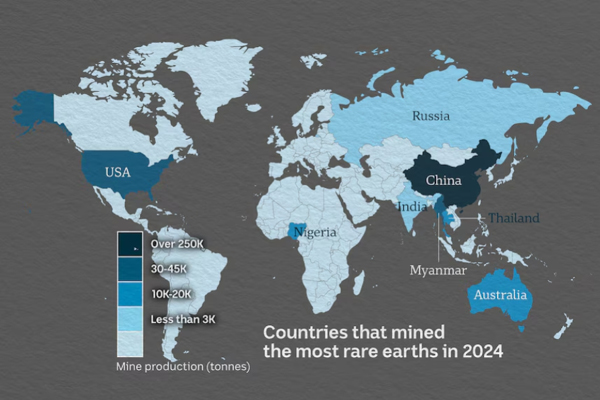 China is leading the field by a wide margin. It extracted and processed some 270,000 tonnes in 2024. The US was next with 45,000 tonnes, followed by Myanmar (31,000) and Australia, Nigeria and Thailand, each on 13,000 tonnes.v